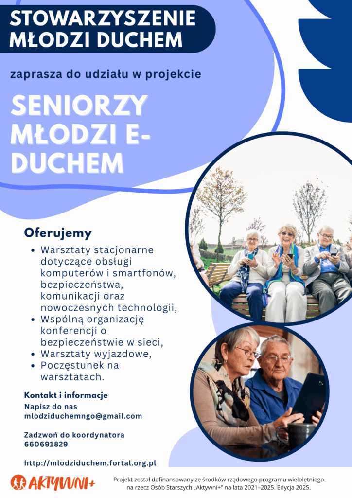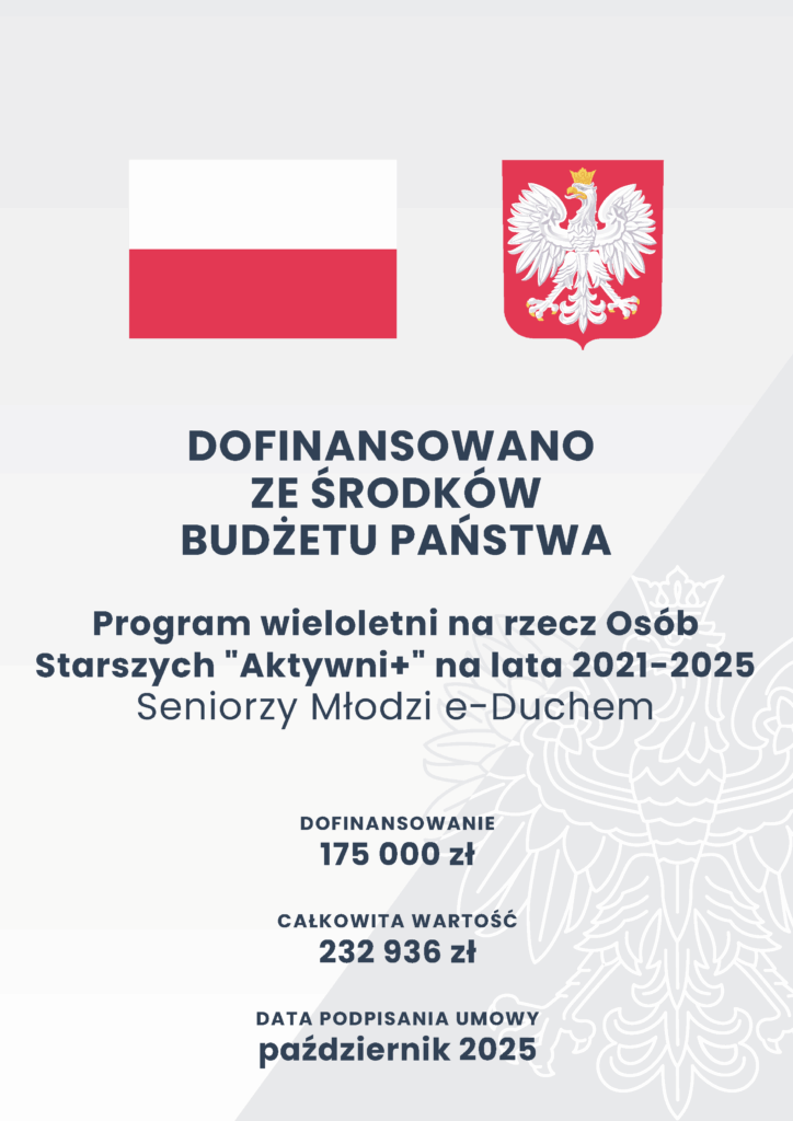 Projekt został dofinansowany ze środków rządowego programu wieloletniego na rzecz Osób Starszych „Aktywni+” na lata 2021-2025. Edycja 2025.